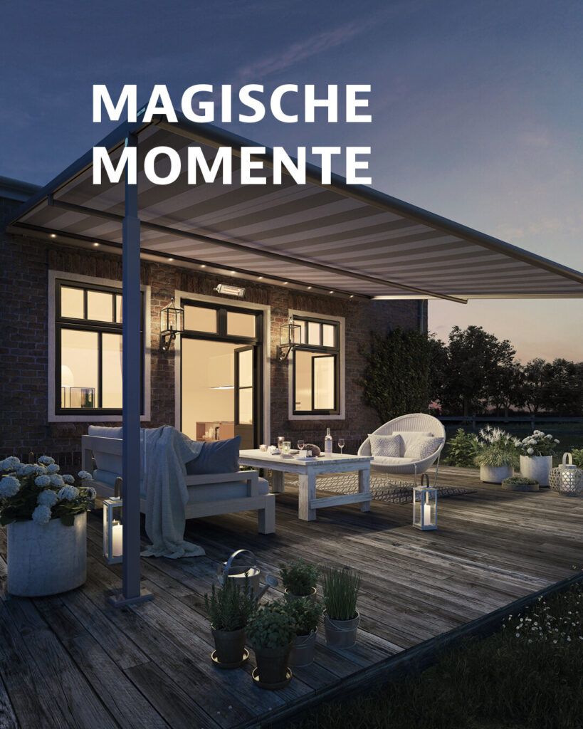 Vom 15.10. – 31.12.2025 erhalten Sie beim Kauf einer windstabilen und regenfesten Pergola-Markise „Plaza Viva“ mit Beleuchtung bei uns einen Rabatt von 10%.