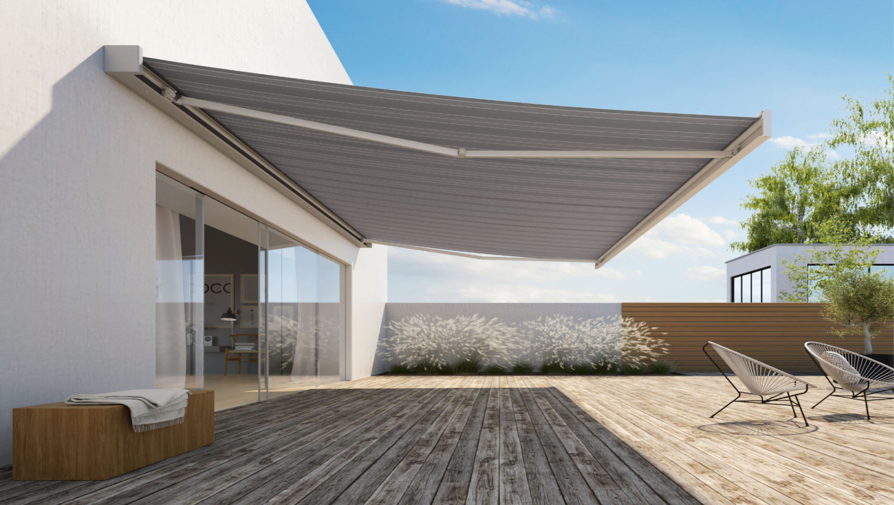 Die Weinor Kubata wertet die Hauswand mit ihrem modernen, kubischen Design auf und bietet einen klaren Mehrwert. Komfortabel und ästhetisch passt die Markise zu jeder Fassade.
