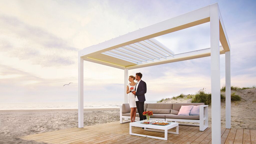 Das Dach der B600 S vereint das Beste aus zwei Welten: drehbare Lamellen, die außerdem komplett aufgeschoben werden können! Die S-förmigen Lamellen schieben sich kompakt ineinander, wodurch Sie maximalen Lichteinfall in den angeschlossenen Wohnräumen erhalten.