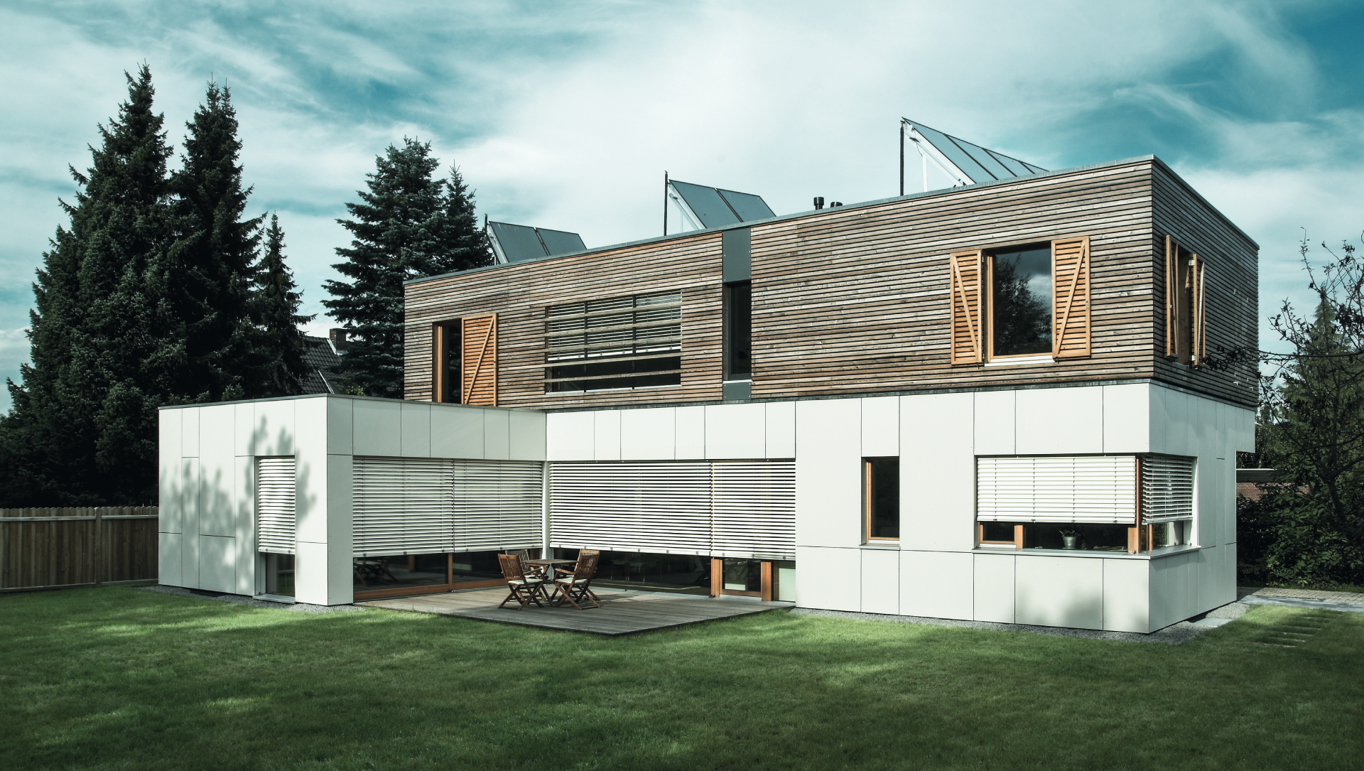 Das Raffstoren-Vorbausystem ROMA Intego besteht aus Aluminium mit eckiger oder quadratischer Kastenform und wird vollständig in die Fassade integriert. Nach Wunsch kommt der Kasten mit abgeschrägter Unterseite für mehr Tageslicht, oder als puristische Variante mit klaren Linien. Der Store ist zudem mit der Comfort- und Design Lamelle CDL erhältlich und auch Solarantrieb ist möglich.